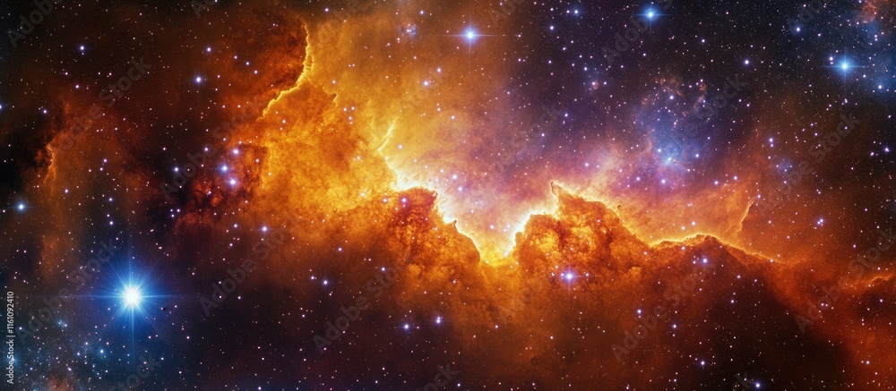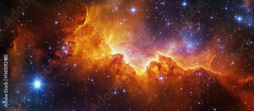 Wall mural cosmic nebula with fiery colors and bright stars in space ideal for background or text overlay