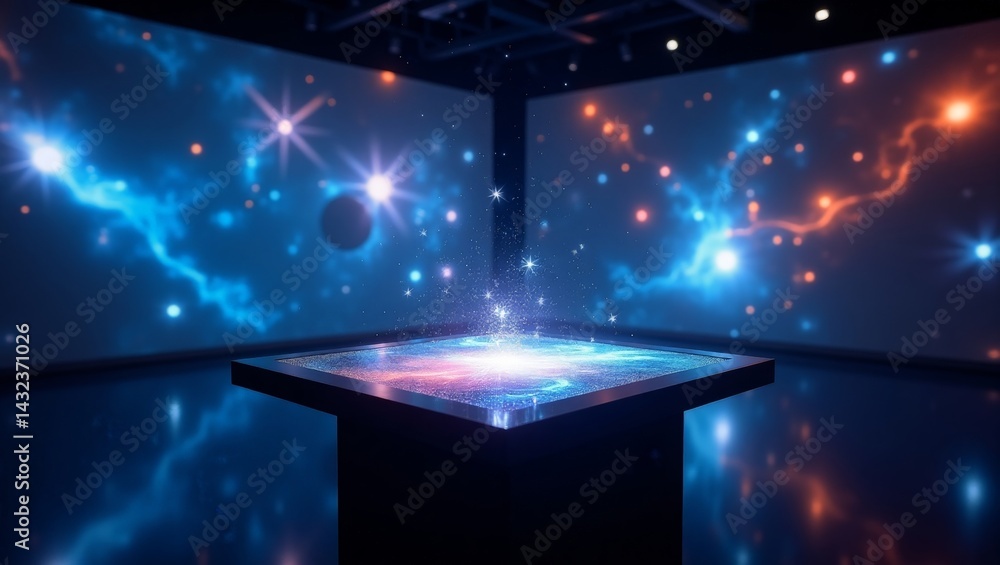 The watermark will not be included on Wall mural.: Cosmic portal and starry display within a futuristic and abstract room