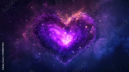 The watermark will not be included on Wall mural.: Cosmic valentine abstract design with deep purple and navy hues, celestial heart constellations and