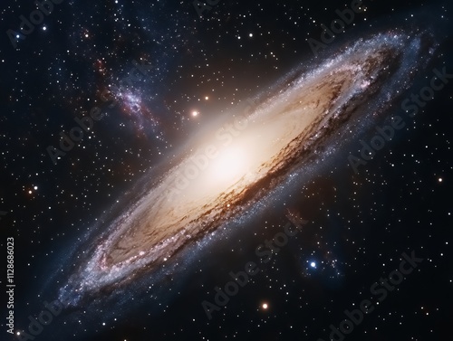 Cosmic view of the andromeda galaxy in soft colors and starlight