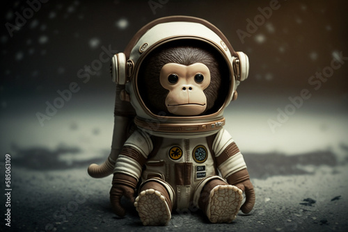 The watermark will not be included on Wall mural.: Cosmonaut or astronaut monkey toy in a spacesuit concept - space and science exploration funny pet an