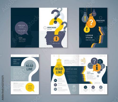 Wall mural cover book design set, human head with light bulb and question mark background - Wall murals Wall mural cover book design set, human head with light bulb and question mark background - Wall murals