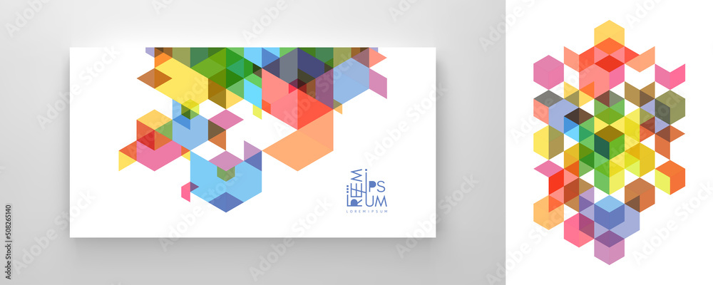 Wall mural : Cover design template - abstract geometrical background - transparent pattern of 3d cubes and hexagons