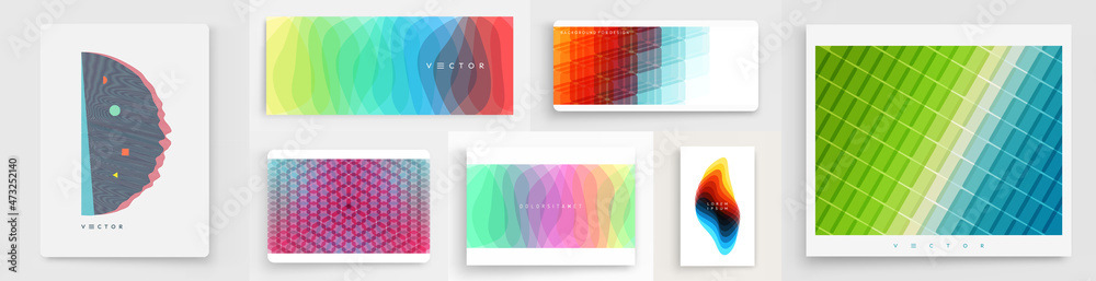 Wall mural : Cover design template - abstract wavy background with dynamic effect - transparent pattern of blocks a