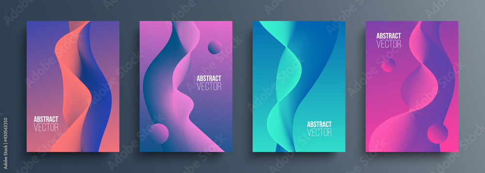 The watermark will not be included on Wall mural.: Cover templates set with dynamic gradient waves - futuristic abstract backgrounds with liquid shapes
