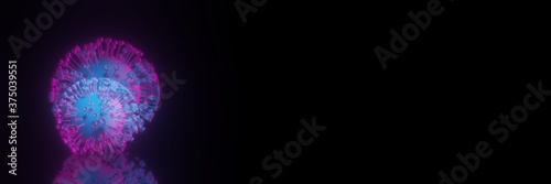 Covid-19 bacteria with neon colors and reflection - 3d rendering illustration with empty space for teWall mural