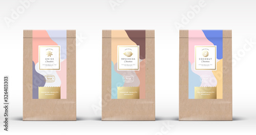 The watermark will not be included on Wall mural.: Craft paper bag with chocolate labels set - abstract vector packaging design layout with realistic sh