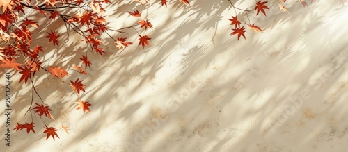 Wall mural cream colored shades depict an abstract autumnal scene with maple tree leaves creating shadows on a  - Wall murals Wall mural cream colored shades depict an abstract autumnal scene with maple tree leaves creating shadows on a - Wall murals