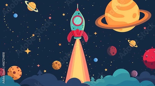 Wall mural create a colorful learning poster for kids with a theme of space exploration