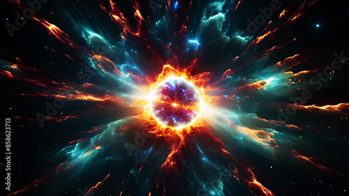 Wall mural create an abstract image of a supernova explosion with a central burst of intense light and vibrant