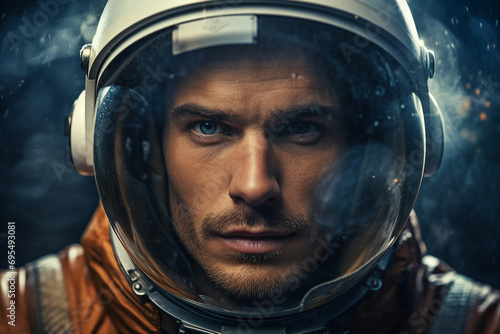 Wall mural created with generative ai tools astronaut portrait exploring deep space discover new planet