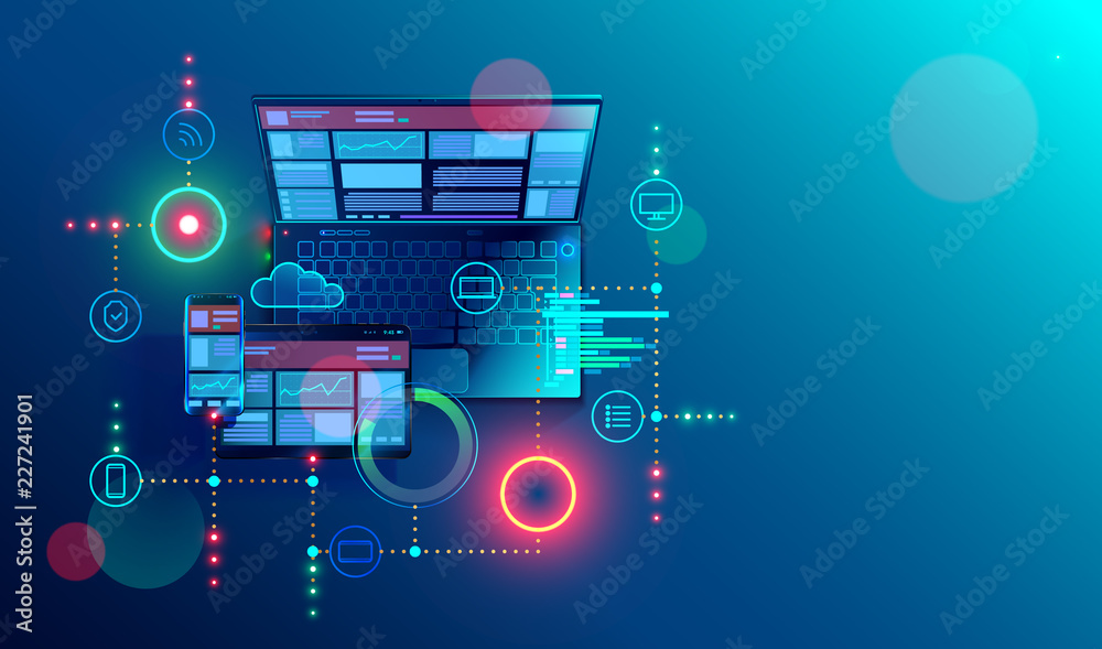 Wall mural creation responsive internet website for multiple platforms. building mobile interface on screen of  - Wall murals Wall mural creation responsive internet website for multiple platforms. building mobile interface on screen of - Wall murals