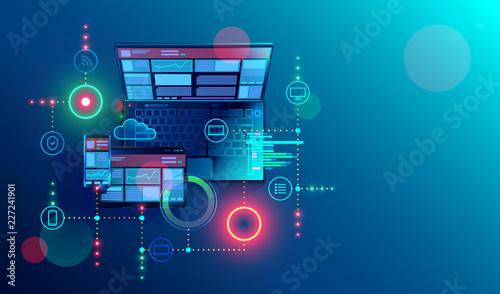 Wall mural : Creation responsive internet website for multiple platforms - building mobile interface on screen of