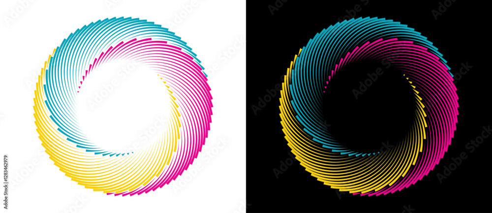 Wall mural : Creative abstract colorful circle - geometric spiral as logo or icon template - the same shape on whit
