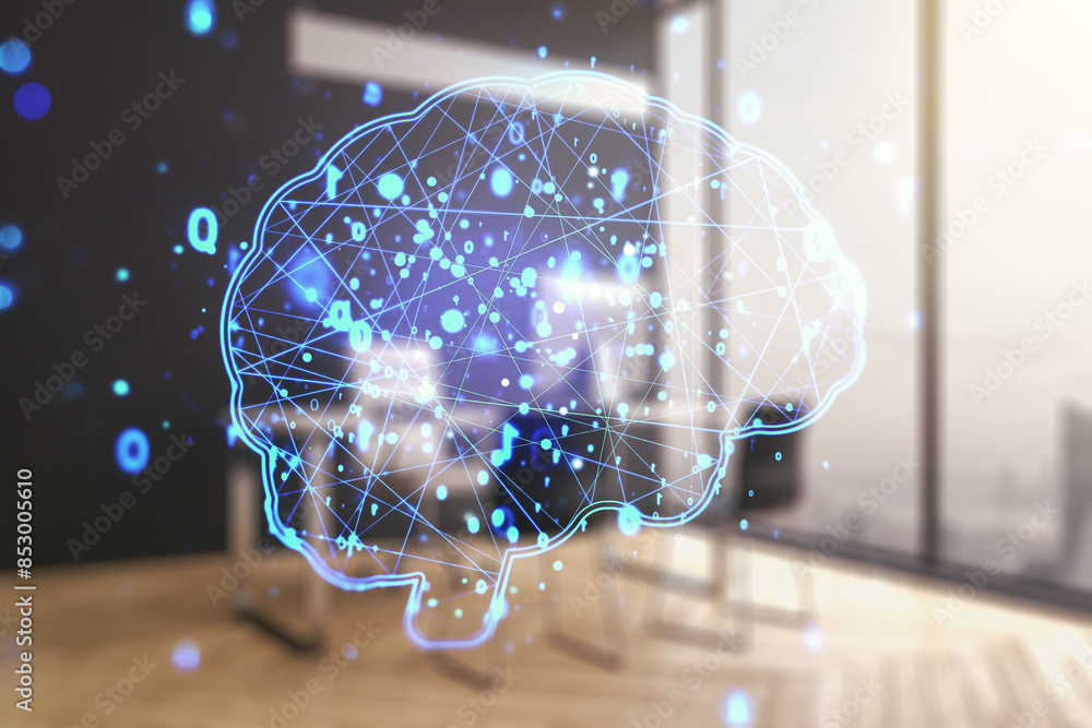 Wall mural creative artificial intelligence concept with human brain hologram and modern desktop with computer  - Wall murals Wall mural creative artificial intelligence concept with human brain hologram and modern desktop with computer - Wall murals