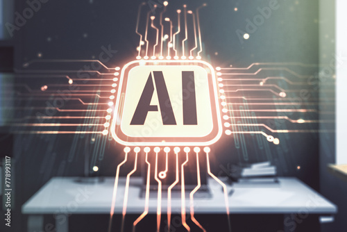 The watermark will not be included on Wall mural.: Creative artificial intelligence symbol concept and modern desktop with computer on background - mult