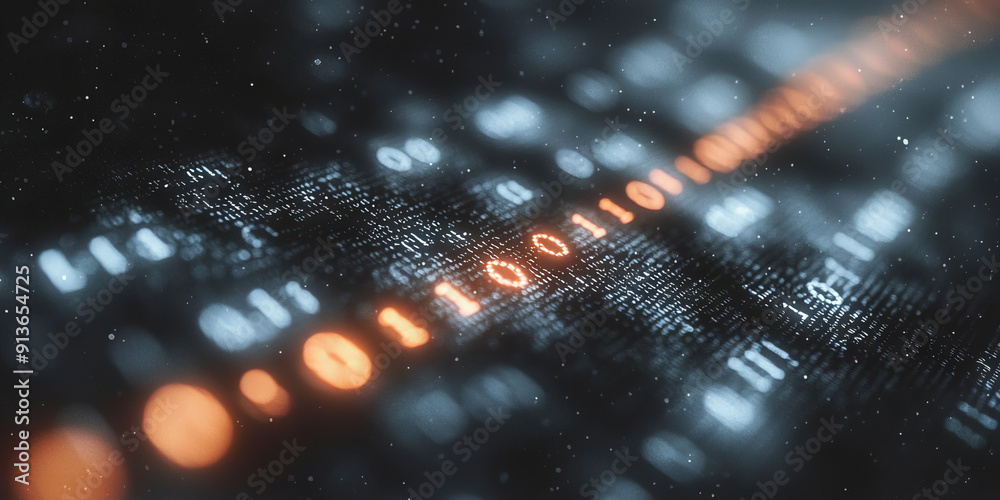 The watermark will not be included on Wall mural.: Creative blue hexagonal background with binary code - technology, design and landing page concept
