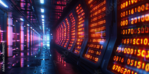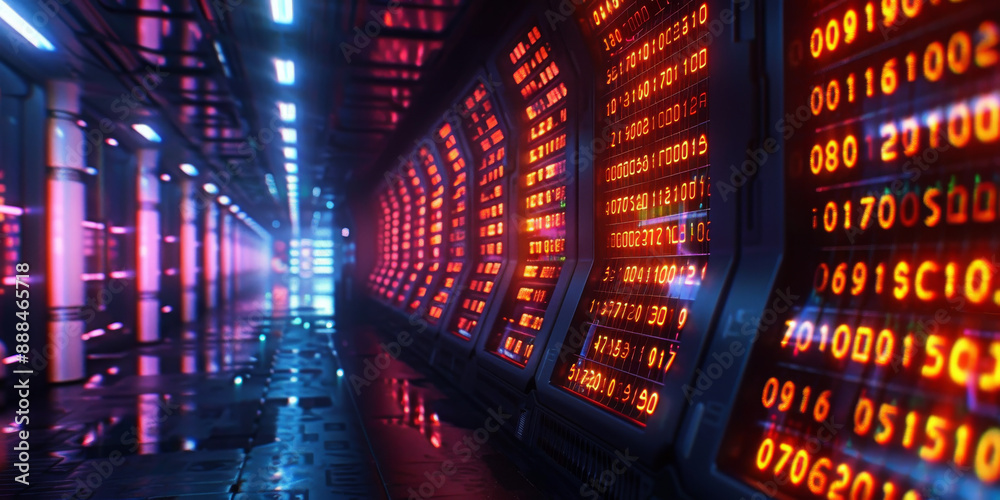 The watermark will not be included on Wall mural.: Creative blue hexagonal background with binary code - technology, design and landing page concept - 3d