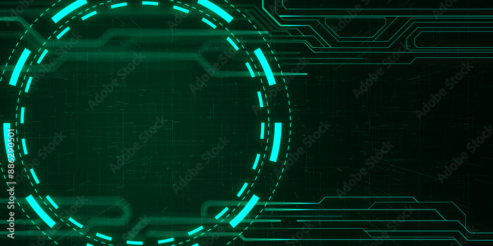 Wall mural creative bright green tech background with linear circle. innovation and technology concept. 3d rend - Wall murals Wall mural creative bright green tech background with linear circle. innovation and technology concept. 3d rend - Wall murals