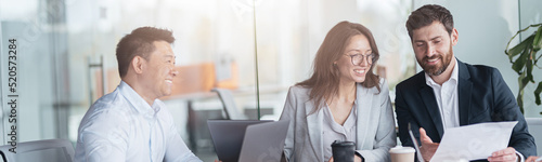 The watermark will not be included on Wall mural.: Creative business team working on project in office with panoramic view - the concept of teamwork -