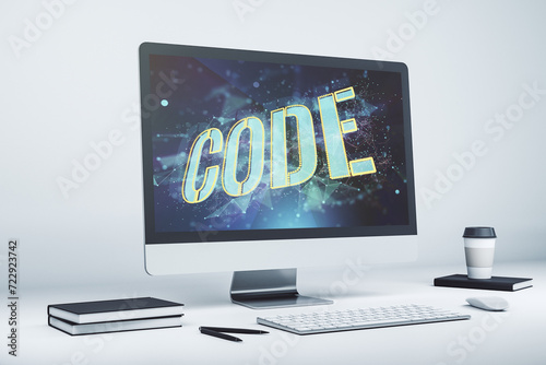 Wall mural creative code word sign on modern computer monitor, international software development concept. 3d r - Wall murals Wall mural creative code word sign on modern computer monitor, international software development concept. 3d r - Wall murals