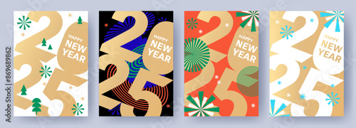 Wall mural : Creative concept of 2025 happy new year posters set - design templates with typography logo 2025 for