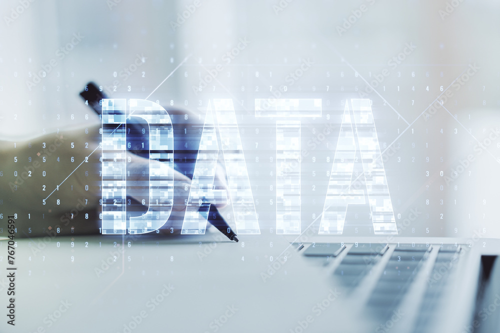 Wall mural creative data word hologram and hand writing in notebook on background with laptop, big data and blo - Wall murals Wall mural creative data word hologram and hand writing in notebook on background with laptop, big data and blo - Wall murals