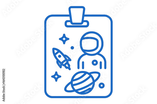 The watermark will not be included on Wall mural.: Creative design featuring an astronaut and rocket with planets on a badge in a futuristic style