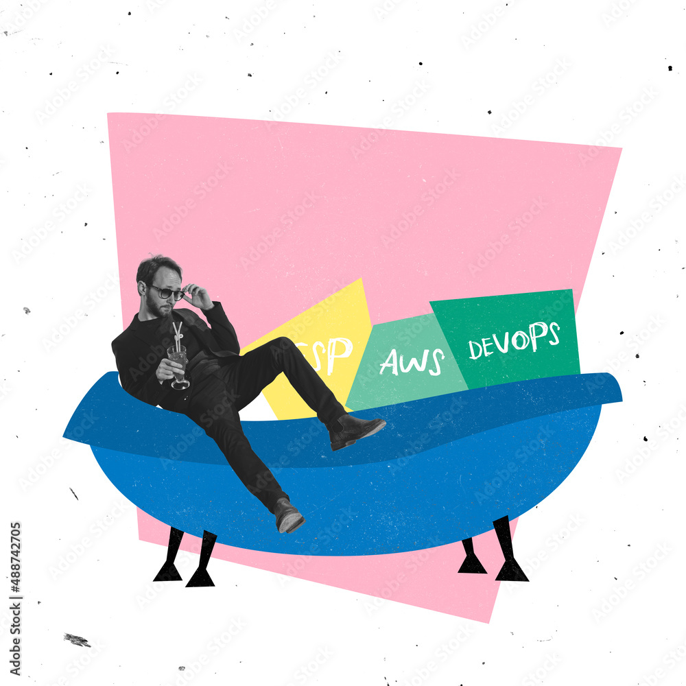 Wall mural creative design. young man, programmer, software developer wotking on devops methodology - Wall murals Wall mural creative design. young man, programmer, software developer wotking on devops methodology - Wall murals
