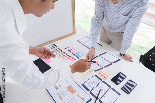 Wall mural creative designer choosing color samples for mobile responsive website development with ui/ux. devel - Wall murals Wall mural creative designer choosing color samples for mobile responsive website development with ui/ux. devel - Wall murals