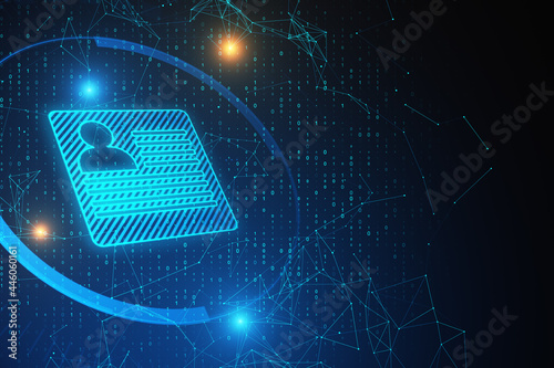 Wall mural creative glowing personal information card on dark blue background with binary code and mock up plac - Wall murals Wall mural creative glowing personal information card on dark blue background with binary code and mock up plac - Wall murals