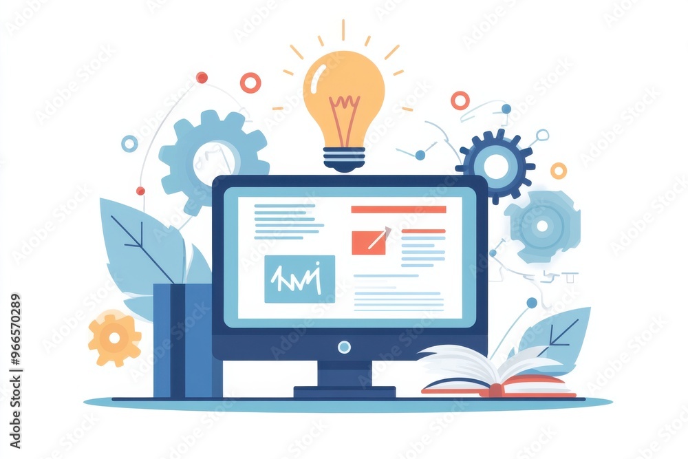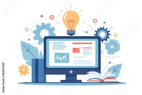 Wall mural : Creative innovation concept with computer screen and light bulb representing ideas and technology