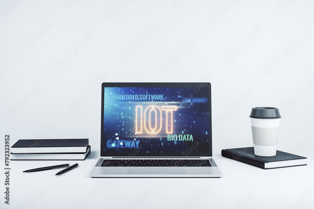 Creative iot illustration on modern computer monitor, future technology concept - 3d renderingWall mural