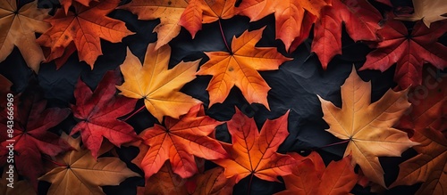 Wall mural creative seasonal autumn background close up of maple leaves with place for text autumn background t