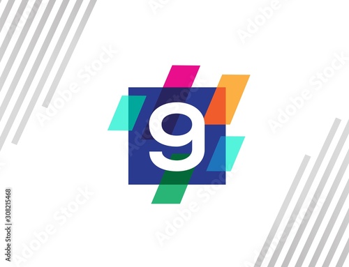Wall mural : Creative square initial number 9 with colorful diagonal line logo design
