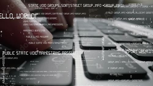Wall mural : Creative visual of computer programming coding and software development shown by man working on comp