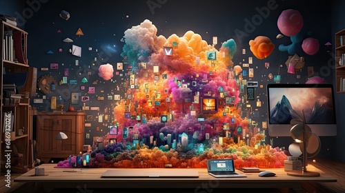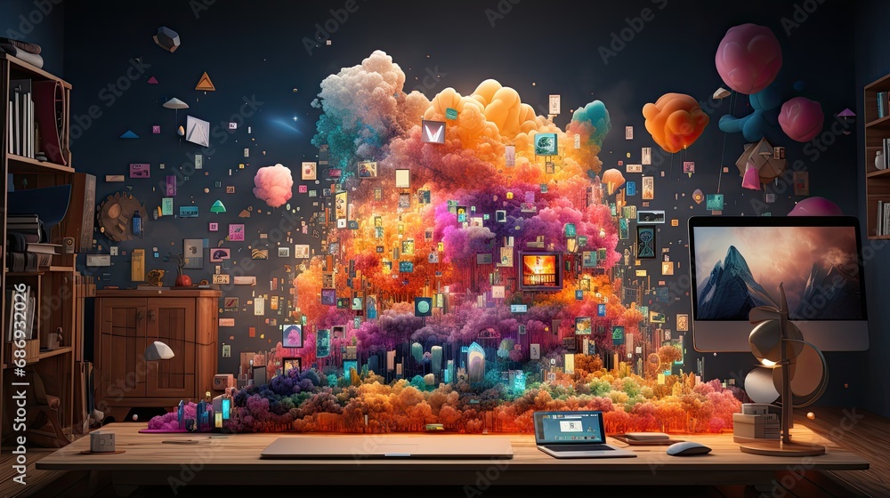 Wall mural creative visual of software and app for gadget applications. user experience design concept. - Wall murals Wall mural creative visual of software and app for gadget applications. user experience design concept. - Wall murals