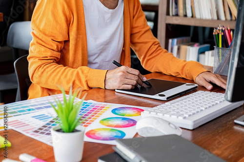 Wall mural : Creative web designer planning application and developing template layout, framework for mobile phon