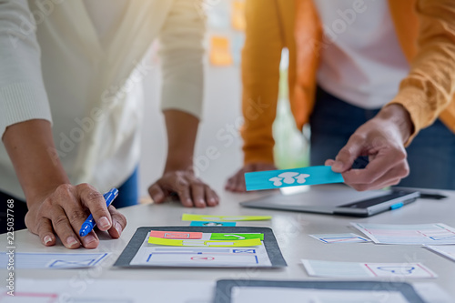 Wall mural : Creative web designer planning application and developing template layout, framework for mobile phon