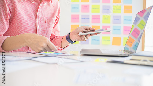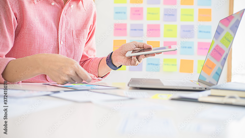 Wall mural : Creative web designer planning application and developing template layout, framework for mobile phon