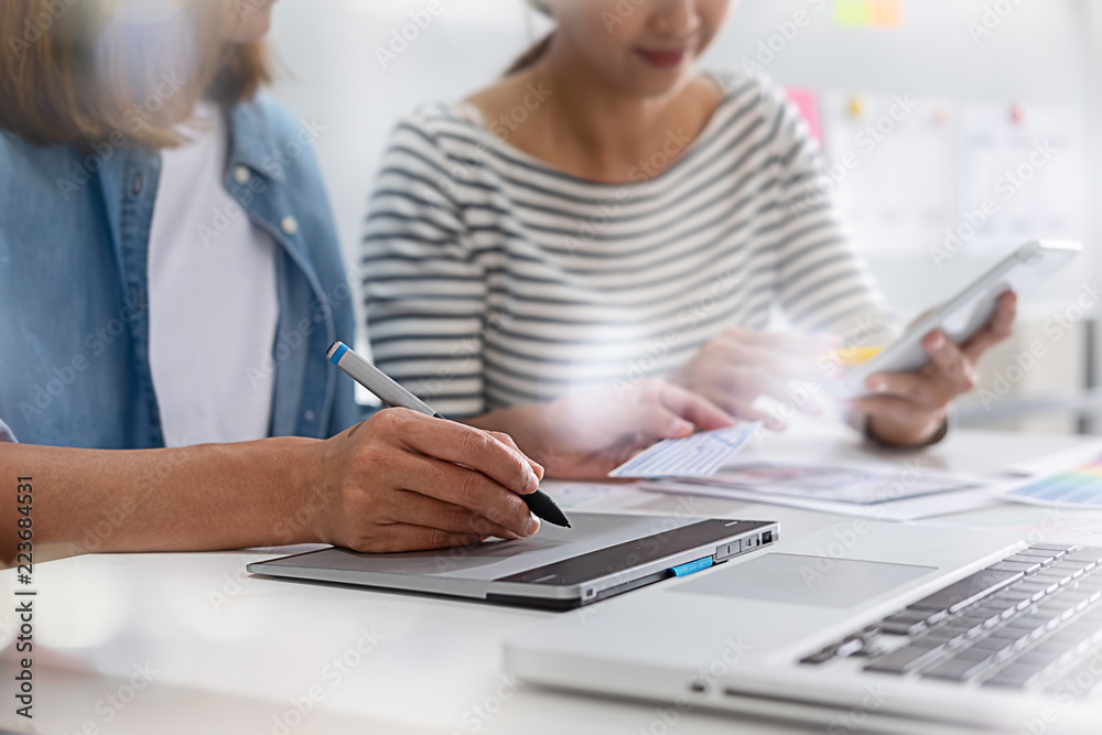 Wall mural : Creative web designer planning application and developing template layout, framework for mobile phon