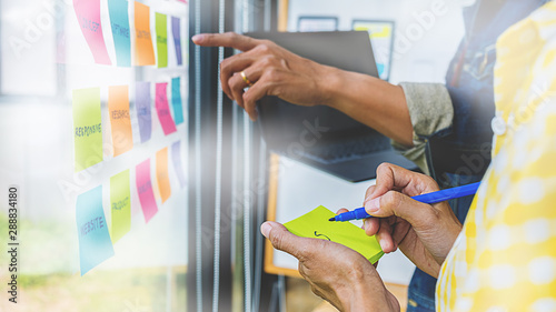 Wall mural : Creative web designer planning application and developing template layout, framework for mobile phon