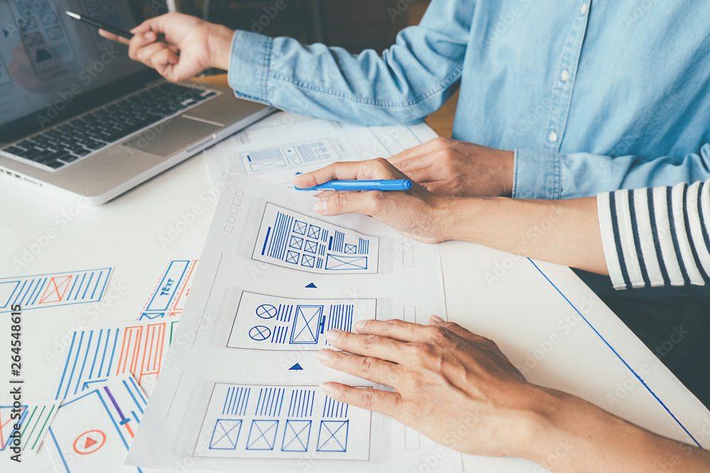 Wall mural : Creative web designer planning application and developing template layout, framework for mobile phon
