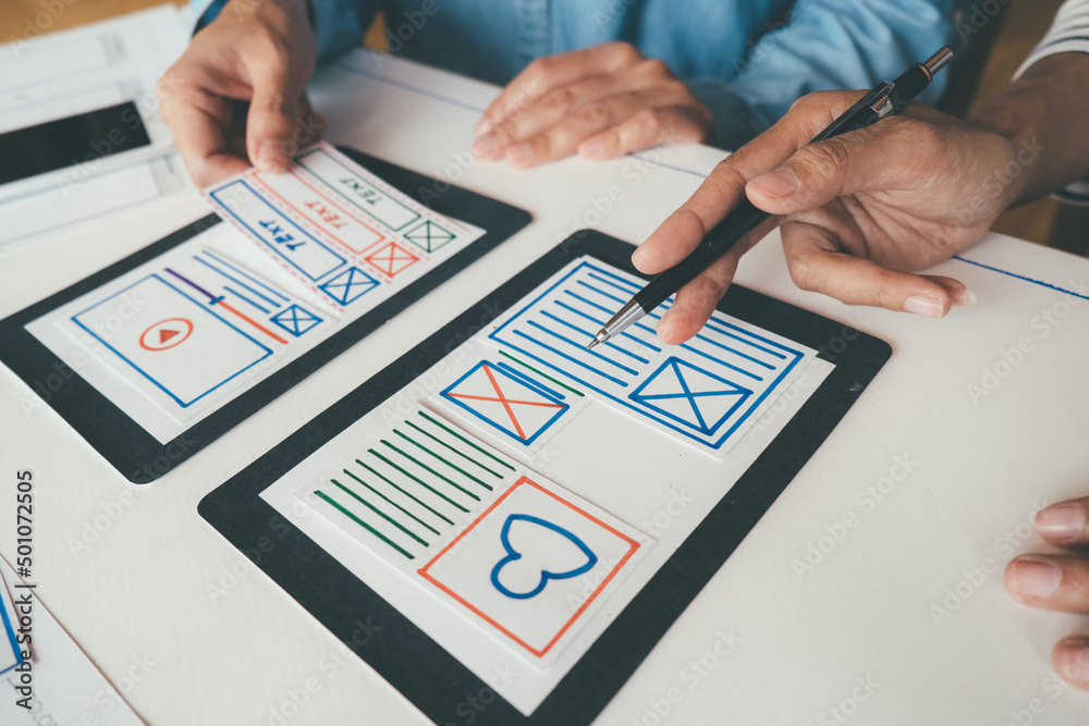 Wall mural : Creative web designer planning application and developing template layout, framework for mobile phon
