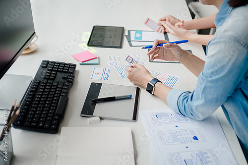 The watermark will not be included on Wall mural.: Creative web designer planning application and developing template layout, framework for mobile phon