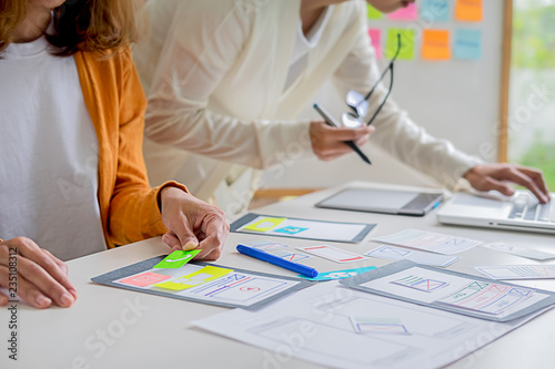 Wall mural : Creative web designer planning application and developing template layout, framework for mobile phon