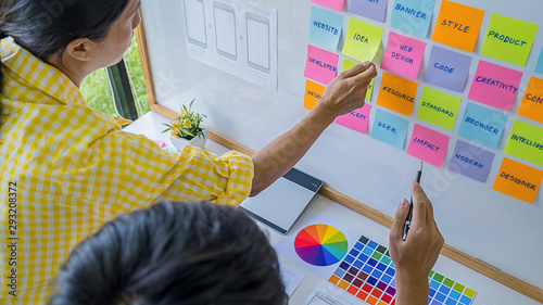 Wall mural : Creative web designer planning application and developing template layout, framework for mobile phon