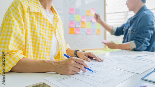 Wall mural : Creative web designer planning application and developing template layout, framework for mobile phon