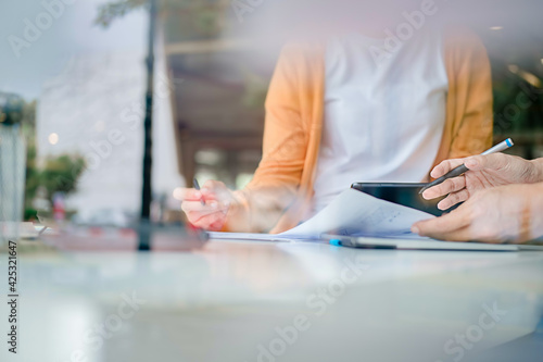 Wall mural : Creative web designer planning application and developing template layout, framework for mobile phon