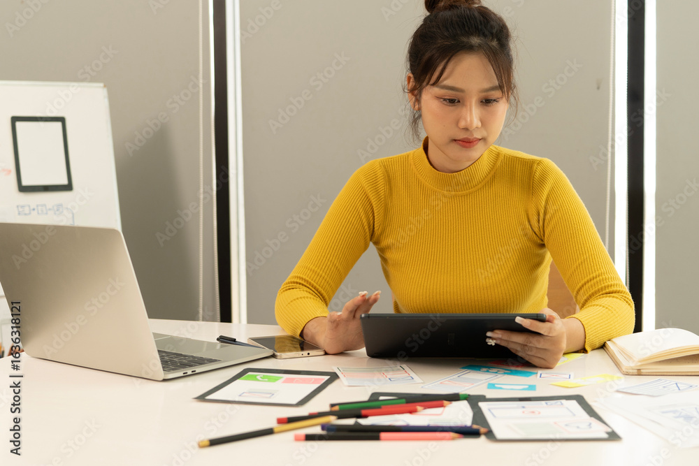 The watermark will not be included on Wall mural.: Creative web designer planning ui application and developing digital template